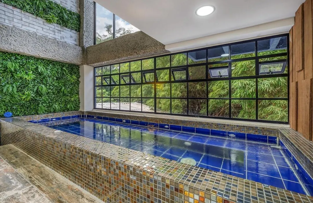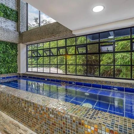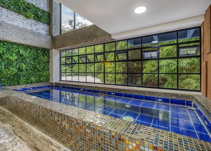 Disfruta de tus vacaciones en Medellín en el Apartamento Terrarya - Huge Ph - Indoor Pool, Jacuzzi And Ac By Lleras Park Medellín. Ideal para quienes buscan una experiencia auténtica, está situado a 16 minutos a pie del Museo Pablo Escobar y a una distancia de 3 km del Pueblito Paisa. Los huéspedes pueden relajarse en el patio de este apartamento, que se encuentra a unos cuantos pasos del Parque El Poblado.